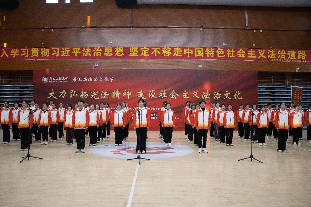 开幕式上,学生代表集体表演了诗朗诵《法在心中》、歌曲《法治灌溉少年强》,法学专业学生进行了“学子宣誓”,表达了他们忠于宪法法律,维护法律尊严,投身法治建设的坚强决心。