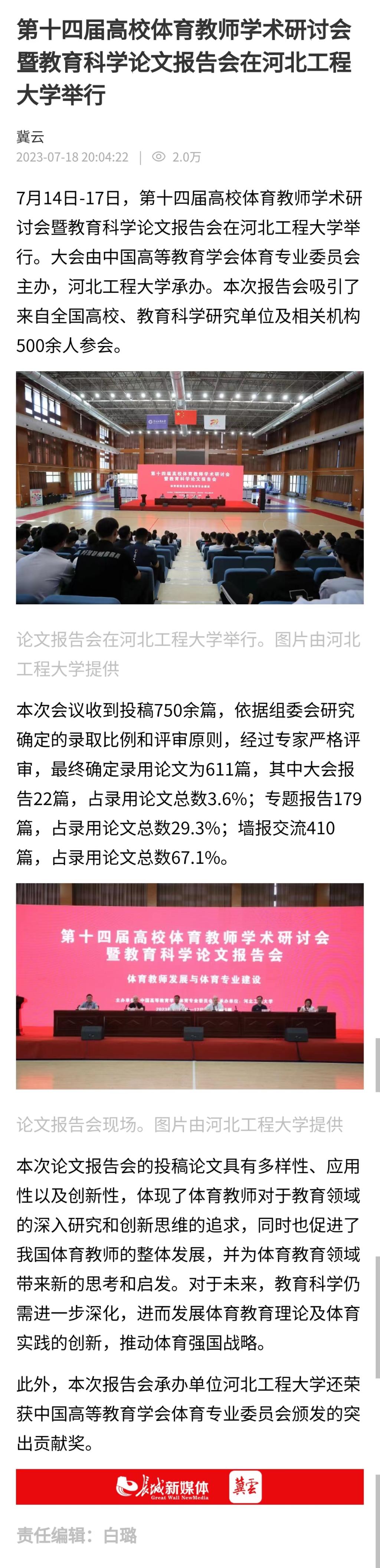 【冀云客户端】第十四届高校体育教师学术研讨会暨教育科学论文报告会在河北工程大学举行