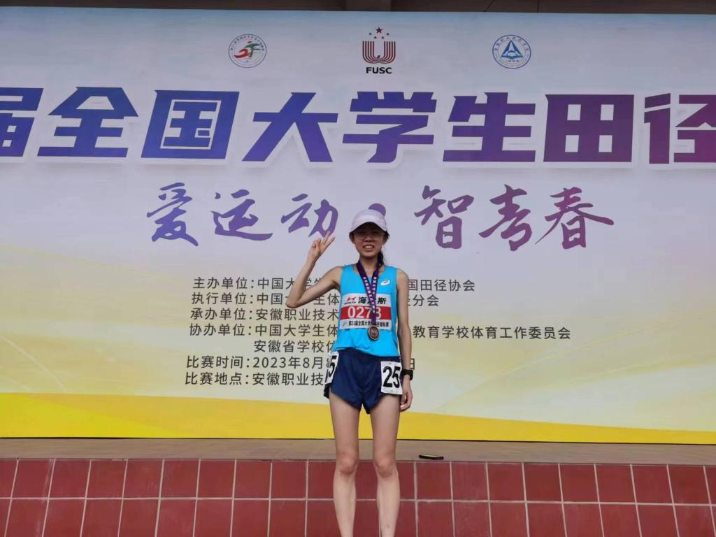 8月15日,第21届全国大学生田径锦标赛在安徽职业技术学院落下帷幕。安博电子官网官方网站入口共获得三金一铜等优异成绩。其中,张成龙以15秒23的成绩获男子甲组110米栏冠军。徐海涛以56.52米的成绩获男子丙组链球冠军打破此前安博电子官网官方网站入口学生任腾宵保持的55.68米纪录。张浩辰以18.60米的成绩获男子丁组铅球项目冠军并打破他本人在河北省第21届大运会上创造的18.41米纪录。张博文荣获女子甲组5000米铜牌。
