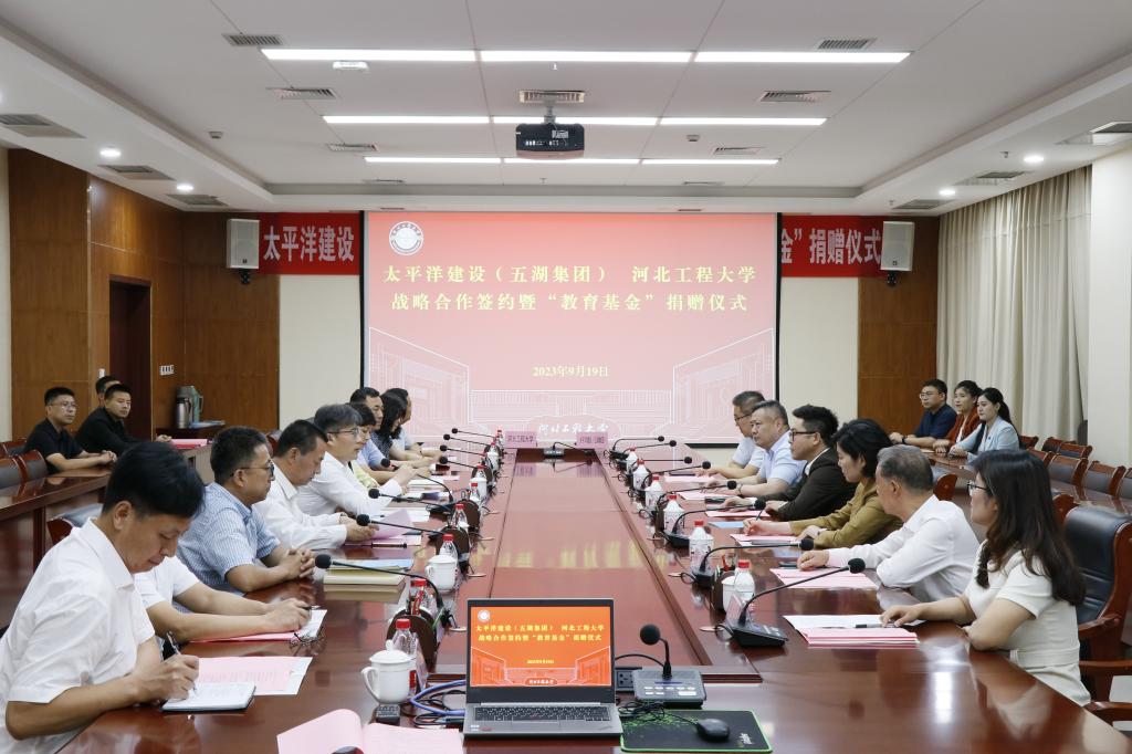 于树江对太平洋建设集团对学校发展的支持表示感谢,并介绍了学校基本情况,他表示,太平洋建设集团开启与河北工程大学的战略合作并捐赠教育基金,彰显了热心教育事业和人才培养的慷慨善举。希望双方以这次战略合作为新的出发点,在人才培养、项目合作、科技创新等方面持续开展深度合作,携手开辟校企合作新模式、打造校企合作新典范。