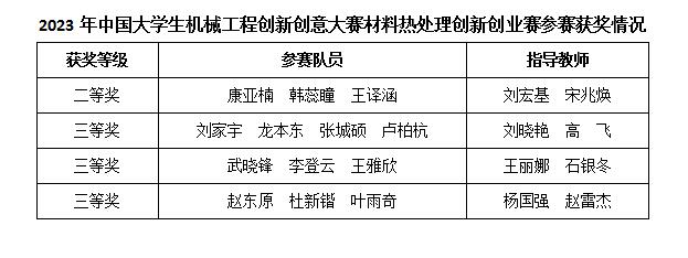 近日,中国机械工程学会热处理分会公布了2023年中国大学生机械工程创新创意大赛第九届材料创新创业赛结果,安博电子官网官方网站入口获二等奖1项,三等奖3项。