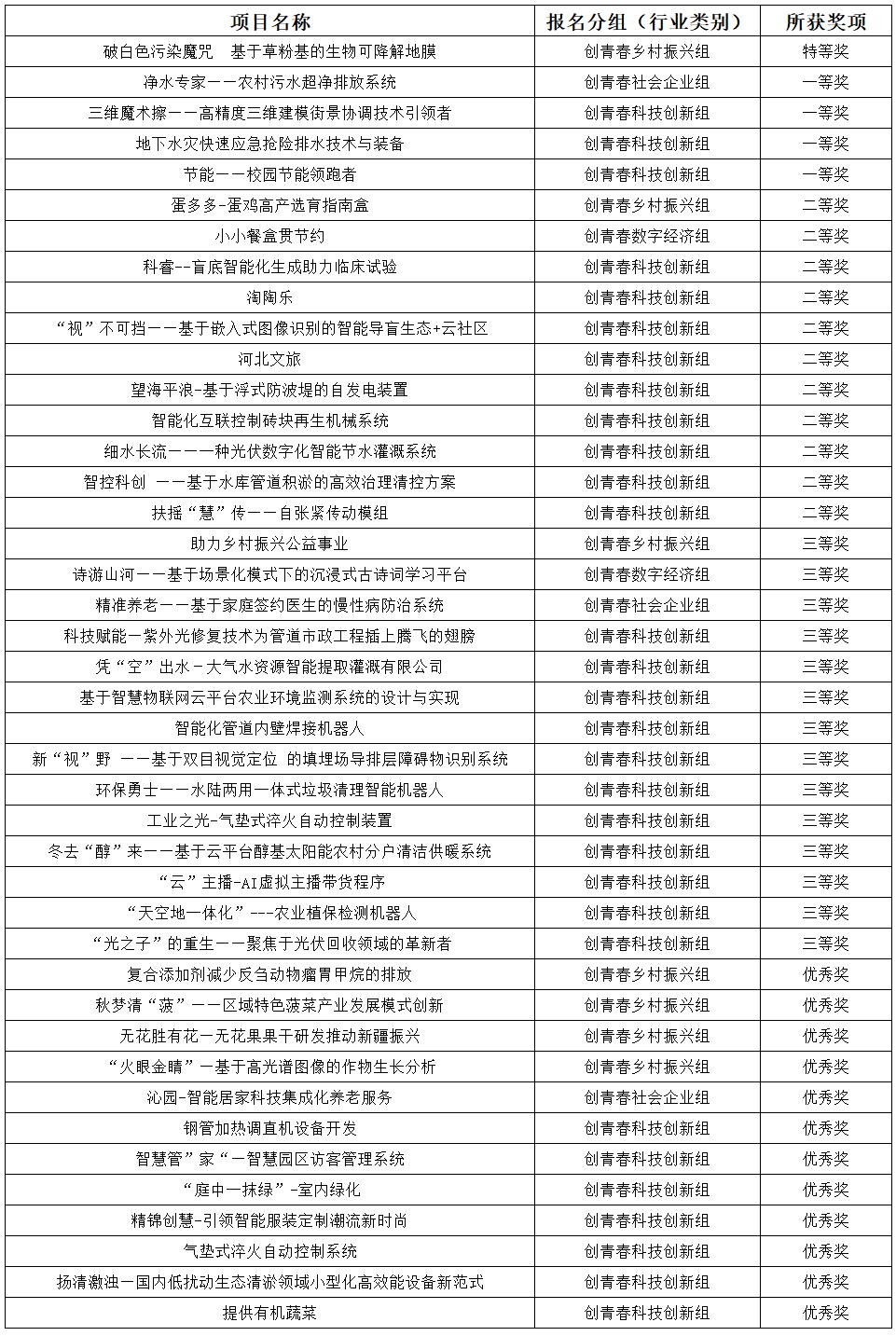 本届大赛由共青团河北省委、省直工委、省委国防科工工委、省科技厅、省工信厅、省农业农村厅、省商务厅、省国资委、省体育局、国家金融监督管理总局河北监管局、省工商联联合主办,唐山市委、市政府承办,设有冀青春个人组、冀青春集体组、创青春技术创新组、创青春社会企业组、创青春数字经济组、创青春体育产业组、创青春乡村振兴组七个组别,共接收2926个报名项目,经过资格审核、初赛、评选环节,113个项目进入决赛,17个项目最终获得大赛特等奖。