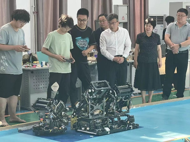 6月26日,校党委副书记、校长于树江来到UPRE机器人团队实验室,看望即将出征第二十二届全国大学生机器人大赛Robocon赛的师生,了解备战情况,并为大家加油鼓劲。副校长吴国英出席活动。
