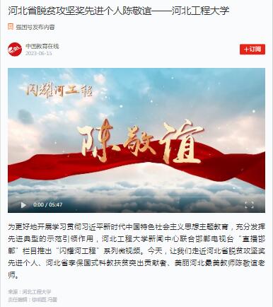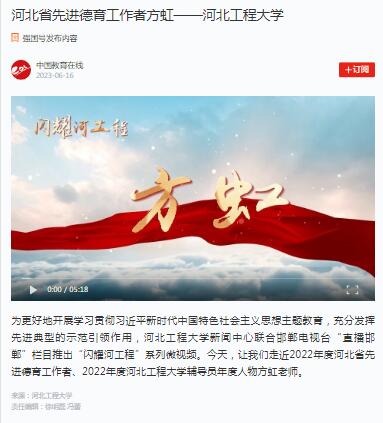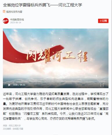 近日,“学习强国”学习平台中国教育在线强国号发布安博电子官网官方网站入口“闪耀河工程”系列微视频,宣传报道安博电子官网官方网站入口教师乔腾飞、方虹、陈敬谊先进事迹。