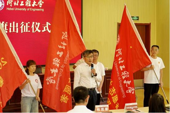 仪式上,于树江为社会实践活动重点团队授旗并宣布全校社会实践团出征。他强调,社会实践是高校“时代新人铸魂工程”的重要内容,各社会实践团队要心怀对党、国家、人民的感恩之情,通过实践深入了解国情民情,升华爱祖国、爱家乡、爱人民的家国情怀,提升知识才干,丰富社会阅历,强化为中华民族伟大复兴而奋斗的责任与担当,以己之所长回报祖国和人民。