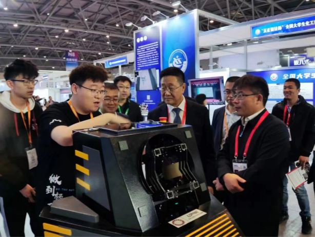 4月8日至10日,第58•59届中国高等教育博览会在重庆召开,安博电子官网官方网站入口UPRE机器人队作为全国大学生机器人大赛优秀代表受邀参展并进行成果展示。河北省教育厅一级巡视员王廷山、二级调研员高明,安博电子官网官方网站入口校长于树江到场指导。