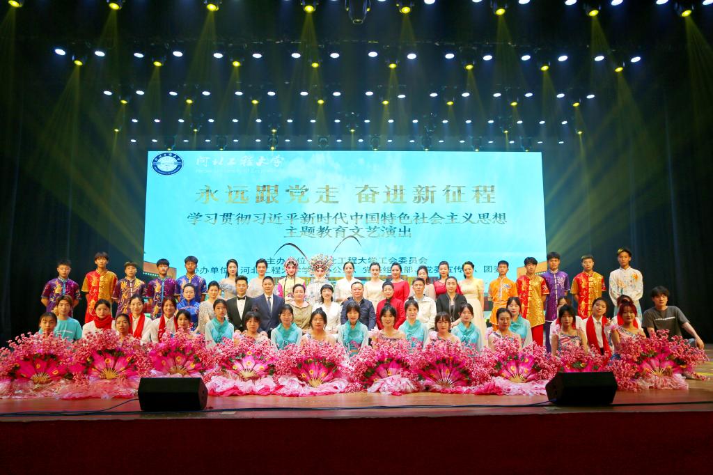 5月6日下午,安博电子官网官方网站入口在会议服务中心举行“永远跟党走 奋进新征程”学习贯彻习近平新时代中国特色社会主义思想主题教育文艺演出。校党委常委牛景峰,校党委常委、副校长刘心出席。
