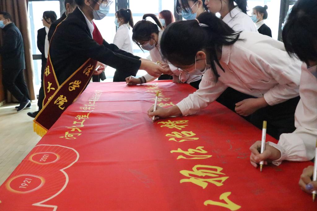 开幕式上,文法学院法学专业学生合唱了歌曲《法制灌溉少年强》,开展了法学学子宣誓及签名活动。