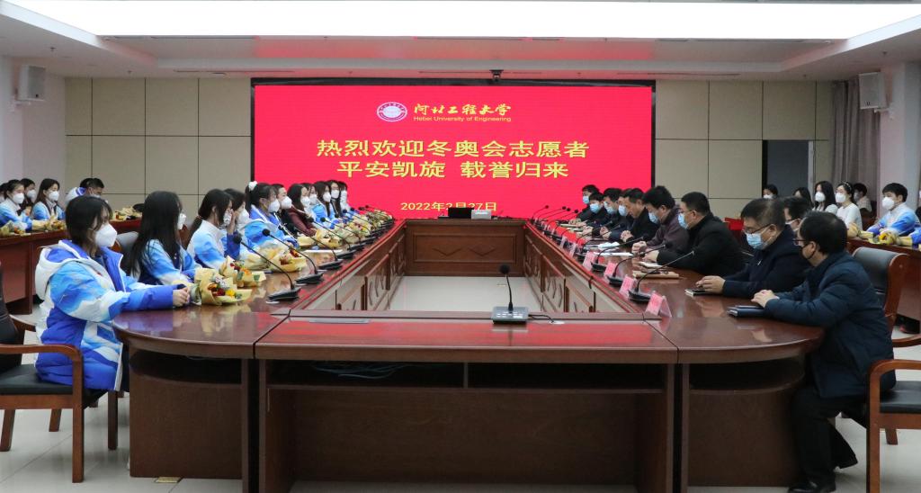 2月27日下午,安博电子官网官方网站入口44名冬奥会张家口赛区制服制证中心志愿者师生圆满完成北京2022年冬奥会志愿服务任务,平安返校。校党委常委、副校长贾东水出席欢迎会,学校冬奥工作领导小组成员单位负责人及部分学生代表参加。