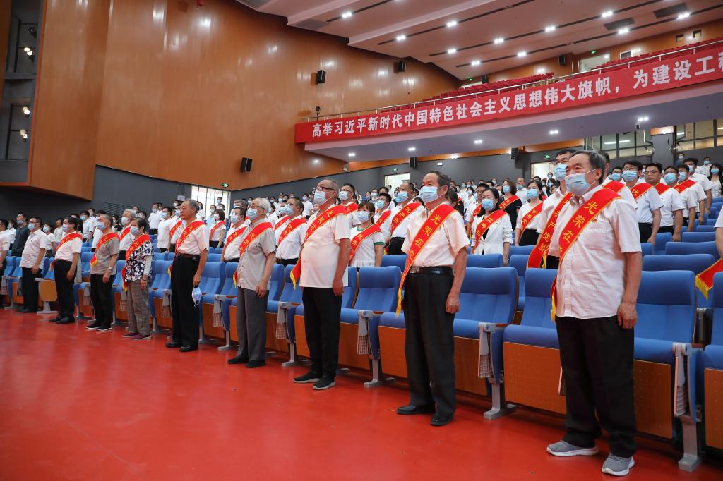 优秀共产党员代表、附属医院重症医学科护士长付继京,优秀党务工作者代表、信息与电气工程学院教师第一党支部书记吴迪,先进基层党组织代表、土木工程学院党委书记郭延华,“光荣在党50年”老党员代表赵松岭先后发言。