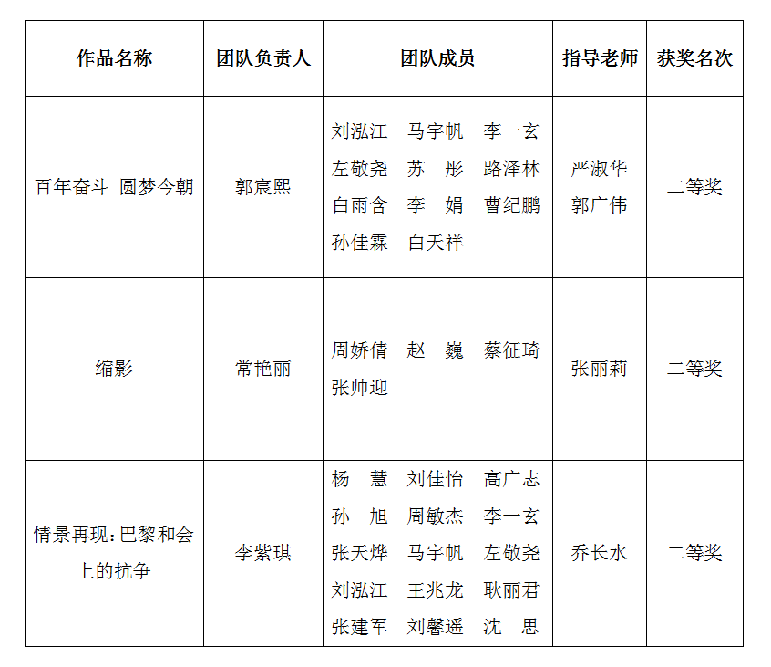近日, 河北省教育厅公布“我心中的思政课”——第五届河北省高校大学生微电影展示活动获奖结果,安博电子官网官方网站入口马克思主义学院指导推荐作品《百年奋斗 圆梦今朝》《缩影》《情景再现:巴黎和会上的抗争》获二等奖。