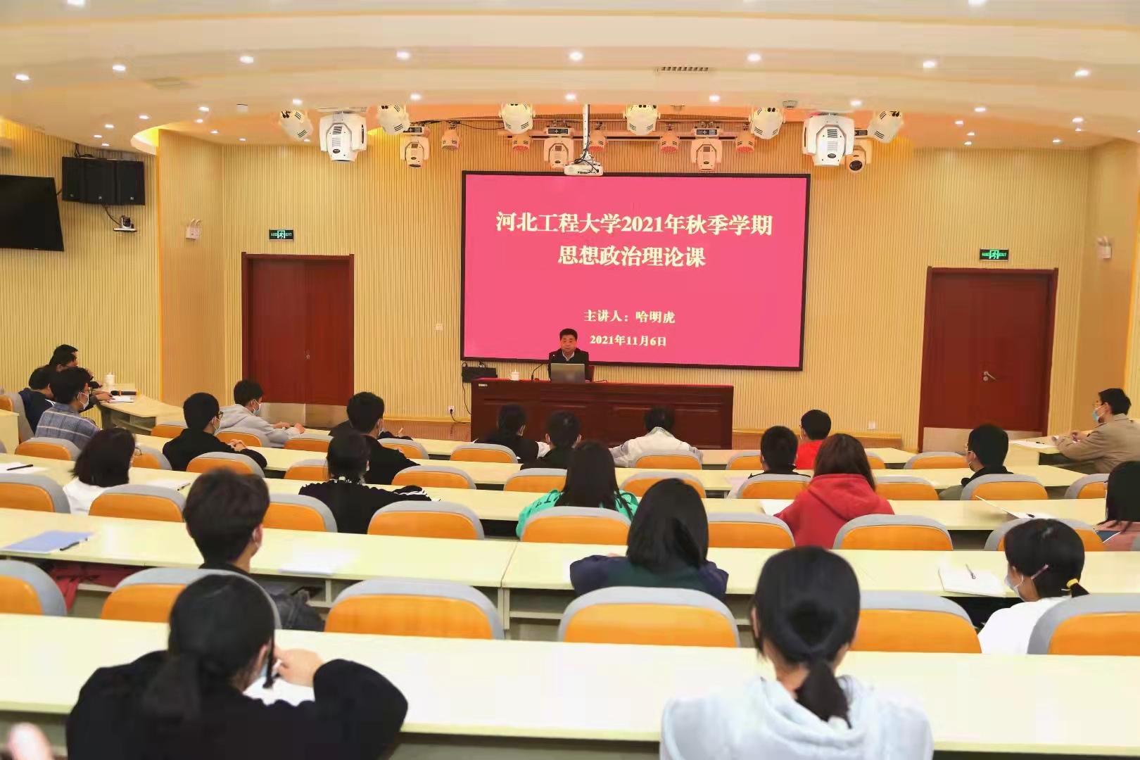 11月6日下午,校党委书记哈明虎在MBA学术报告厅以“中国梦 工程梦 我的梦”为题,为同学们讲思想政治理论课。管理工程与商学院2021级工程管理专业本科生和2020级研究生140余人参加学习。