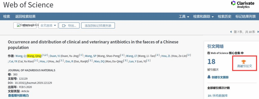 ESI是基本科学指标数据库(Essential Science Indicators)的简称,由世界著名的学术信息出版机构美国科技信息所(ISI)于2001年推出的衡量科学研究绩效、跟踪科学发展趋势的基本分析评价工具。ESI高被引论文(Highly Cited Paper)是指近10年内发表且被引次数排在相应学科领域全球前1%以内的论文。论文链接号:DOI: 10.1016/j.jhazmat.2019.121129.