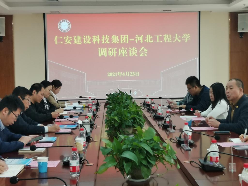 4月23日上午,仁安建设科技集团董事长柳仁川及相关处室负责同志一行5人来校调研科技创新工作。校党委常委、副校长何立新出席并主持会议。