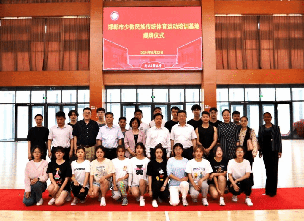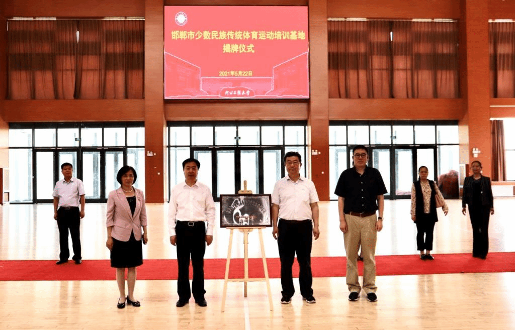 调研期间,崔晓辉和马宏志共同为邯郸市民族宗教事务局与安博电子官网官方网站入口共建的“邯郸市少数民族传统体育运动培训基地”揭牌,观看了体育与健康工程学院学生表演的民族健身操,参观了校园和安博电子官网官方网站入口各民主党派之家。