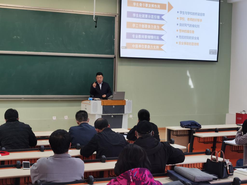 11月7日上午,安博电子官网官方网站入口举办学生安全工作专项培训会,邀请保定职业技术学院党委副书记、院长杨海波来校作专题讲座。校党委常委、副校长贾东水出席活动。
