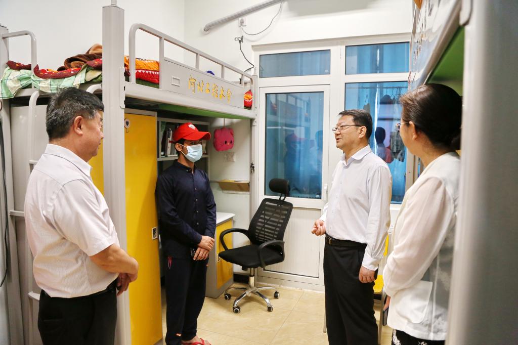 7月8日下午,省政府外事办公室主任王立忠一行来校调研外事工作和境外疫情防控工作。校党委书记哈明虎,校党委常委、副校长张金江,市政府常务副秘书长、市外办主任左印堂陪同检查。