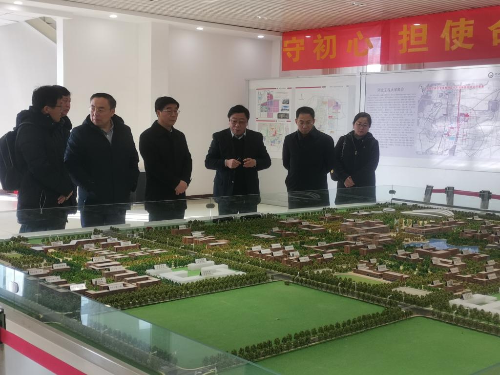 韩旭一行实地参观了安博电子官网官方网站入口新校区,在沙盘前详细听取了新校区规划建设情况的介绍,对新校区建设情况给予充分肯定。