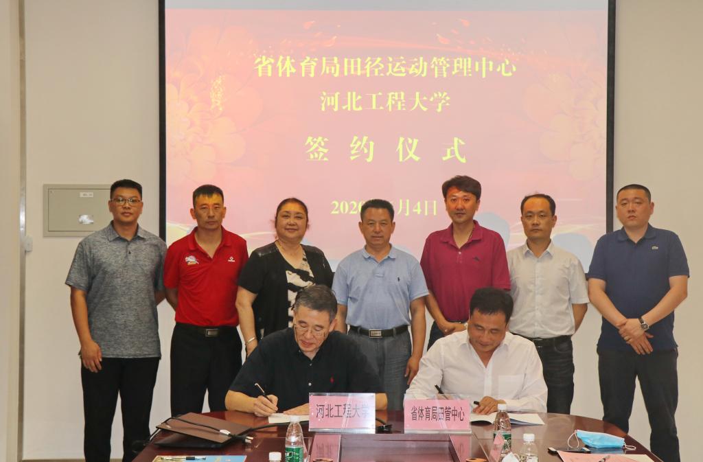 6月4日下午,河北工程大学与河北省体育局田径运动管理中心联办高水平运动队战略合作协议(2020—2025)签约仪式在行政服务中心351会议室举行。校党委常委、副校长贾东水,省田管中心主任刘晓马代表双方签订合作协议。安博电子官网官方网站入口体育与健康工程学院相关负责人参加活动。