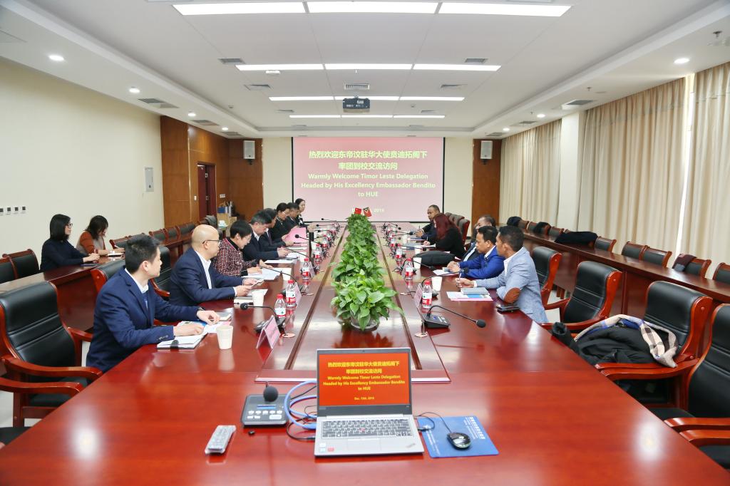 12月12日-13日,东帝汶民主共和国驻华特命全权大使贲迪拓来校访问。省教育厅国际合作与交流处处长姬振旗陪同访问。校党委书记哈明虎会见了贲迪拓一行。校党委常委、副校长刘心主持座谈会。