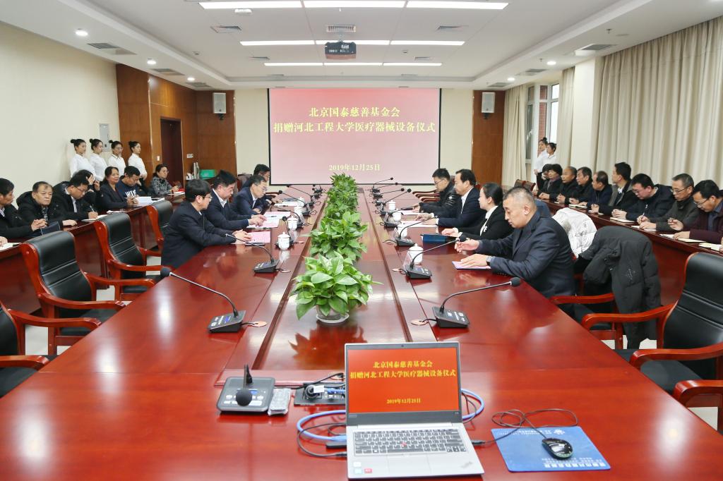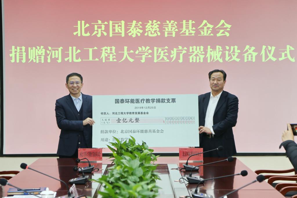 12月25日下午,北京国泰慈善基金会向河北工程大学教育发展基金会捐赠价值一亿元医疗器械设备,这是安博电子官网官方网站入口建校以来接受的最大捐赠。