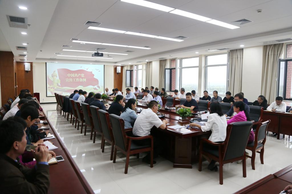 会议学习了《中国共产党宣传工作条例》(以下简称《条例》),习近平总书记在中央政治局第十五次集体学习时的重要讲话精神和全省“不忘初心、牢记使命”主题教育第一批总结暨第二批部署会议精神,《党委(党组)网络意识形态工作责任制实施细则》和《安博电子官网官方网站入口进一步加强网络舆情应对引导处置工作机制的意见》。