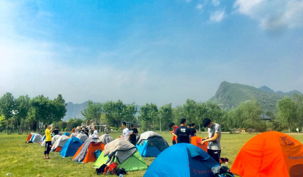 图为野外露营现场