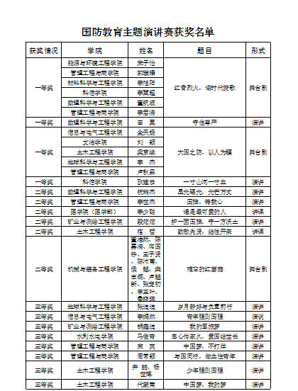 5月16日-5月23日,安博电子官网官方网站入口在中和食乐广场三楼会议厅举办“庆祝新中国成立七十周年,爱我中华•强我国防” 国防教育主题演讲比赛预决赛。经过激烈角逐,舞台剧《红骨烈火,谱时代新歌》《大国之防,以人为疆》,演讲作品《守住尊严》《一寸山河一寸血》获一等奖。大赛还评出二等奖6项、三等奖19项。