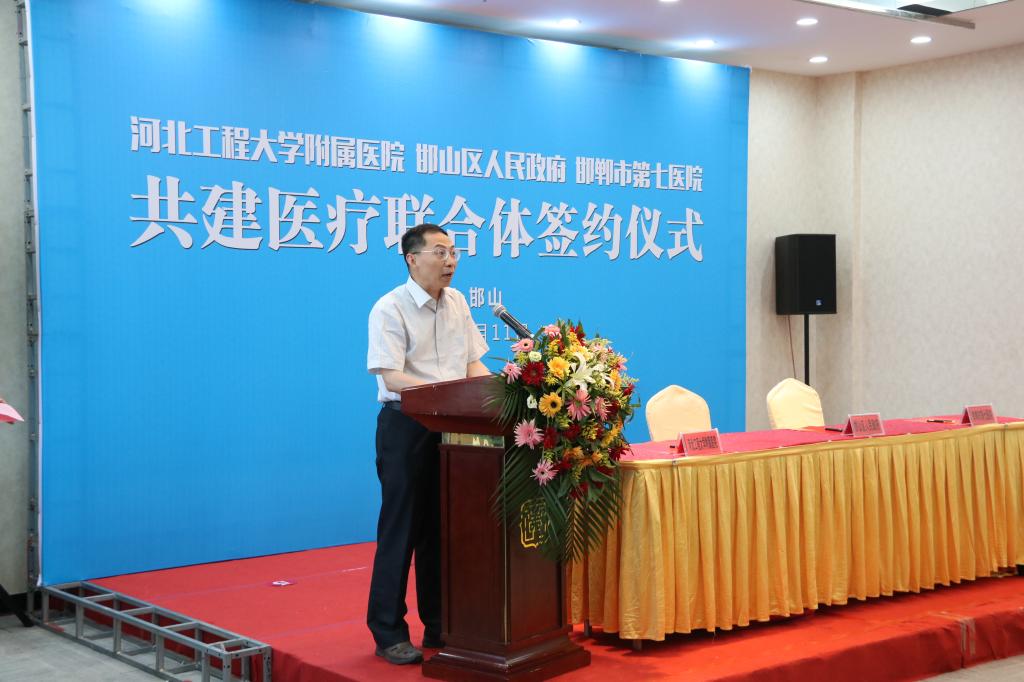 靳禄兵在致辞中表示,此次签约是推进邯山区民生事业发展的一件大事,是关系群众健康福祉的民心工程,对于创建“健康新邯山”,提升邯山区医疗服务能力,补齐医疗资源不足的短板,加快基层卫生与健康事业发展具有重要意义。