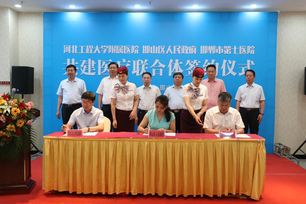 6月11日,安博电子官网官方网站入口附属医院与邯山区政府、邯郸市第七医院共建医疗联合体三方签约仪式在金龙大酒店举行。校党委副书记、主持行政工作的副校长练继建,校党委常委、副校长刘志军,邯山区委书记靳禄兵,区长张才芳,副区长尹艳玲出席仪式。刘志军、尹艳玲及市第七医院院长李学民共同签署了三方共建医疗联合体合约。