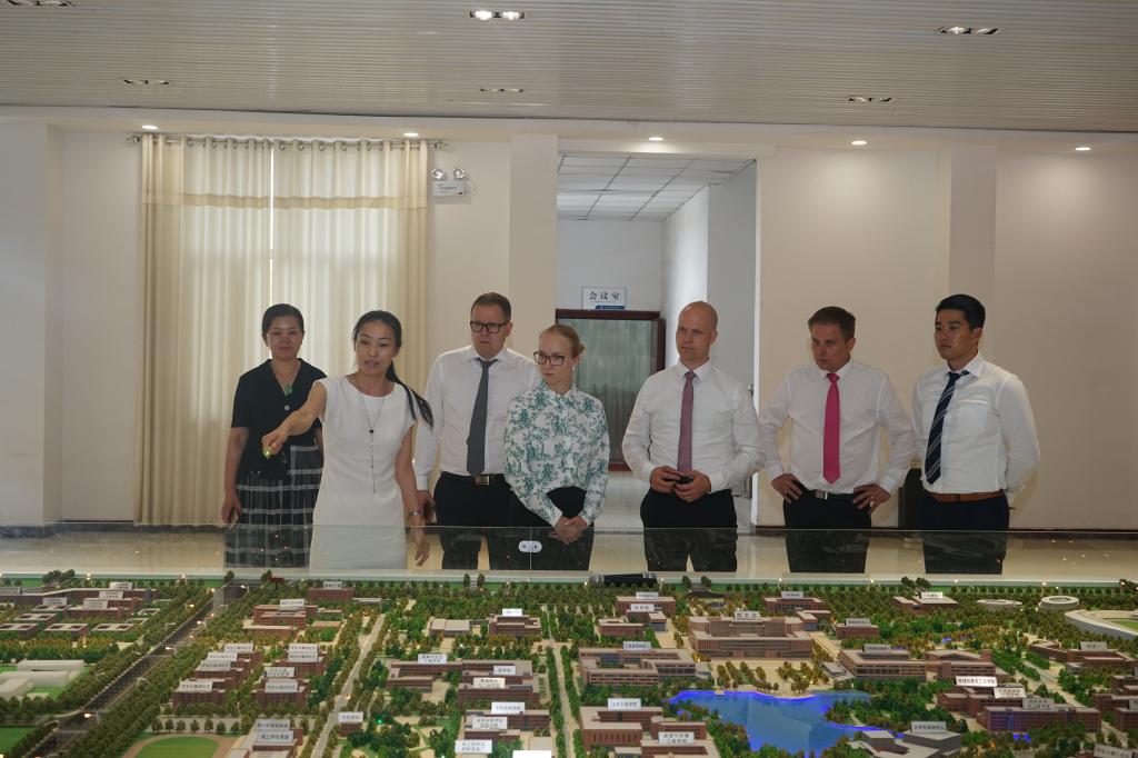 会后,芬兰外宾还实地参观了新校区建设现场,在沙盘前详细听取了新校区规划建设的情况介绍,对新校区规划和建设进度给予高度赞赏,并对今后开展深入广泛的交流合作表示期待。