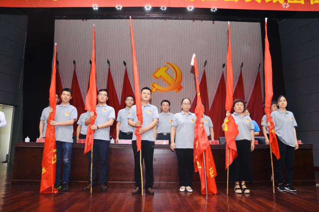 仪式上,与会领导为社会实践团队授旗。指导教师代表管理工程与商学院郭影、实践队员代表机械与装备工程学院机制1602班徐金星作交流发言。