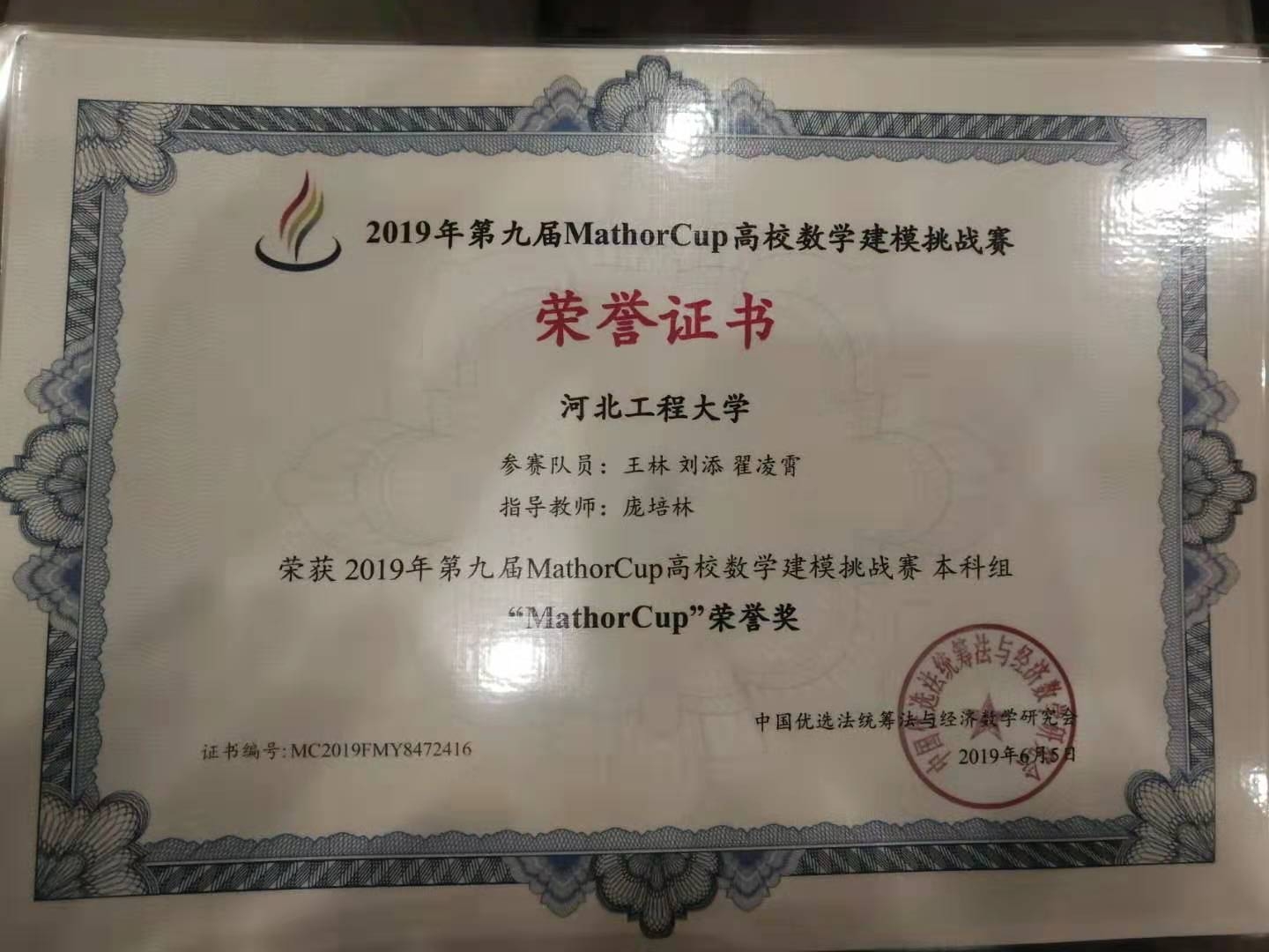 本项赛事由著名数学家华罗庚教授创建的国家一级学会中国优选法统筹法与经济数学研究会主办。包括清华大学、浙江大学等37所985高校及108所211院校在内的501所高校、5637支队伍参赛。评审委员会及邀请的评审专家经过初评、网评、会评、复审四个阶段的评审以及荣誉奖获选队伍现场答辩,最终评选出来自中山大学、北京理工大学、河北工程大学及燕山大学的4支队伍获得MathorCup荣誉奖。