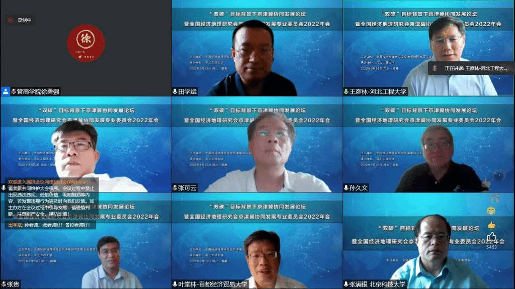 此次论坛以“‘双碳’目标背景下京津冀协同发展”为主题,聚焦“双碳”目标下京津冀协同发展面临的新机遇和新挑战,来自中国人民大学、南开大学、首都经济贸易大学、中国社会科学院、河北经贸大学、河北工程大学等单位的9位专家学者在专题报告中各抒己见,分享了京津冀协同发展相关领域的最新研究成果,并建言献策,提出了诸多鲜明而切实的观点。来自全国各地的专家学者、教师学生共计1700多人通过线上方式参加论坛。