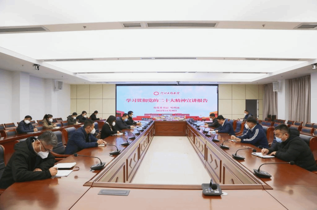 为深入学习领会党的二十大精神,贯彻落实好中央、省委部署要求,11月30日上午,校党委书记、校党委宣讲团团长哈明虎作学习贯彻党的二十大精神宣讲报告,为所联系的管理工程与商学院学生讲思想政治理论课。管理工程与商学院师生代表,学校办公室、组织部、宣传部部分党员干部参加。