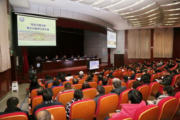 12月27日下午,安博电子官网官方网站入口第三次教学工作大会在五教报告厅召开。会议强调,要全面贯彻全国教育大会和新时代全国高等学校本科教育工作会议精神,落实河北省教育大会要求,以立德树人为根本任务,深化本科教育教学改革与创新,全面提高人才培养能力。校领导哈明虎、王延吉、彭文民、吕海涛、曹庆奎、王虎平、王林昌、郭鸿湧出席大会,校党委常委、副校长吕海涛主持大会。