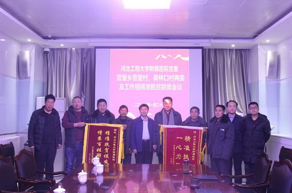 1月22日,平山县营里乡营里村、桑林口村“村两委”班子成员、村民代表一行10人为安博电子官网官方网站入口附属医院送来锦旗,感谢附属医院对两村建设发展的大力支持。校党委常委、副校长、附属医院院长刘志军及附属医院相关负责人出席座谈会。