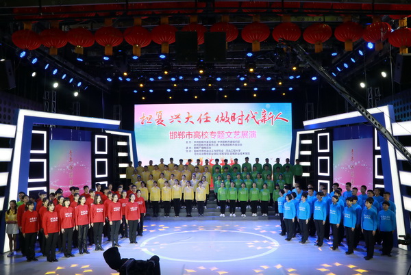 12月14日,“担复兴大任,做时代新人”邯郸市高校专题文艺展演在邯郸广播电视台演播厅举行。校党委常委曹庆奎出席活动。安博电子官网官方网站入口相关部门负责人及近200名师生参加活动。