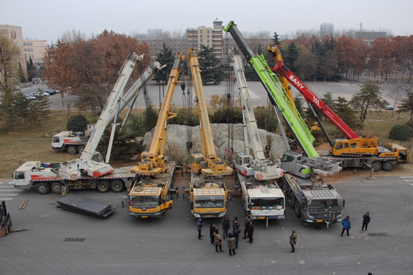 | 图为泰山石搬运至新校区南大门内指定位置 |