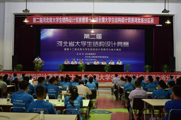 开幕式上,全国大学生结构设计竞赛秘书处秘书长、浙江大学毛一平教授,河北省大学生结构设计竞赛秘书处副秘书长、石家庄铁道大学宋玉香教授出席开幕式并讲话,校党委常委曹庆奎教授致欢迎辞。
