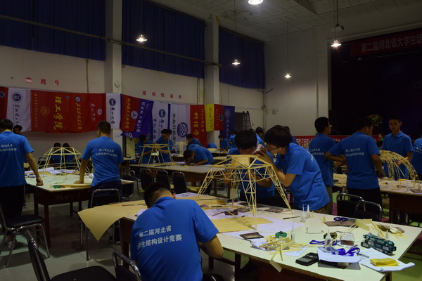 此次竞赛,由河北省教育厅、河北省土建类教学指导委员会主办,河北工程大学承办,北京迈达斯技术有限公司、江苏东华测试技术有限公司协办。竞赛以“承受多荷载工况的大跨度空间结构模型设计与制作”(2018年全国大学生结构设计竞赛赛题)为题,旨在通过制作大跨度空间结构结构模型并进行多荷载工况的加载试验,解决大跨度空间结构建造过程中遇到的实际问题,探讨空间结构的受力特点、设计优化、施工技术等问题,展示青年大学生的创新思维、实践能力与合作精神。