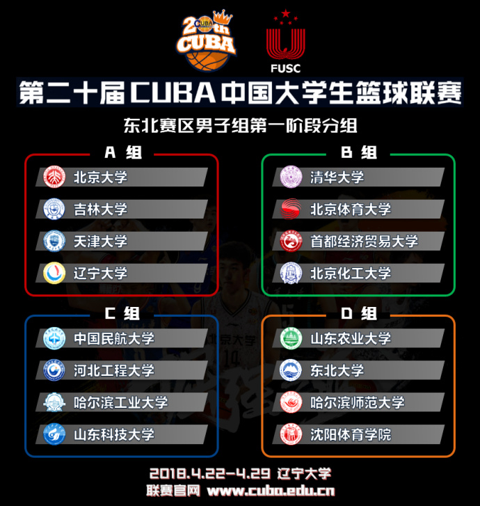 4月22日,第二十届CUBA中国大学生篮球联赛东北区赛在沈阳市辽宁大学正式开幕,安博电子官网官方网站入口男篮与老对手哈尔滨工业大学、山东科技大学、中国民航大学同被分在C组。