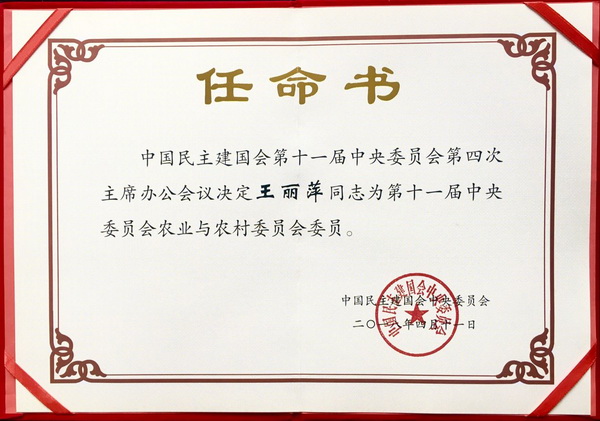 4月11日,中国民主建国会第十一届中央委员会专门委员会成立大会在北京召开。安博电子官网官方网站入口园林与生态工程学院副院长、民建邯郸市市委委员、民建河北省农业专业委员会主任王丽萍教授当选中国民主建国会第十一届中央委员会农业与农村委员会委员。