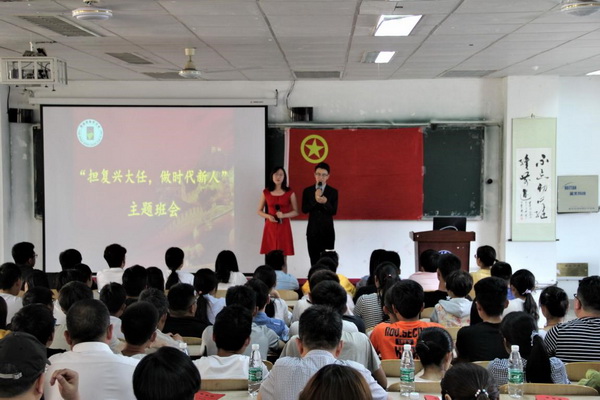 主题班会上,该社团“党的十九大精神特色宣讲团”队员分享了《习近平为梁家河群众打井、建沼气池的故事》《令人痛惜的抗美烈士——毛岸英》《习主席给父亲的一封生日贺信》三个红色故事,4名学生代表围绕“担复兴大任 做时代新人”作了主题发言。