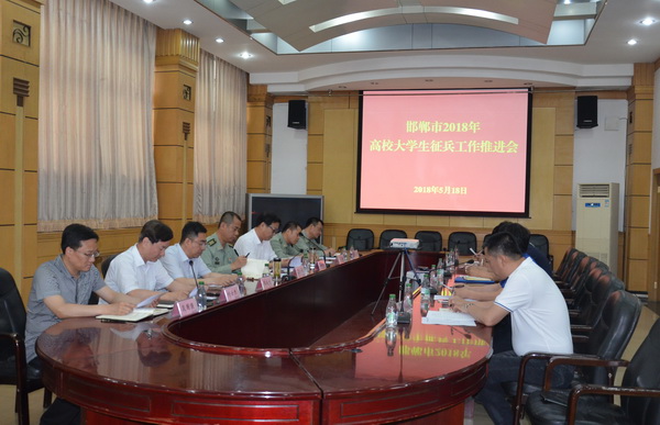 5月18日下午,邯郸市2018年高校大学生征兵工作推进会在安博电子官网官方网站入口举行。邯郸军分区司令员渠延军,邯郸市人民政府副市长杜树杰,校党委常委、副校长刘志军及驻邯高校相关负责人出席会议。