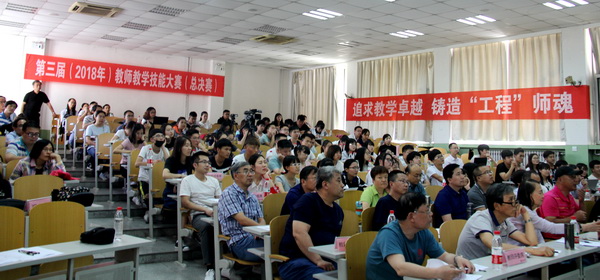 此次大赛分为预赛、决赛两个阶段。参赛教师通过教案和讲稿、现场说课、课堂教学三个比赛环节,全方位地展现了专业素养和职业风范。各学院(部)100多名师生代表现场观摩了比赛。