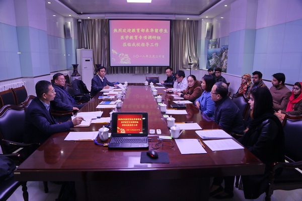3月19日至21日,受教育部国际交流与合作司指派,以广西大学医学院院长齐忠权为组长的专家组,到安博电子官网官方网站入口开展来华留学生医学教育专项调研。省教育厅国际处处长侯建国、副处长韩文,校领导哈明虎、王延吉、彭文民、刘志军、曹庆奎陪同调研。